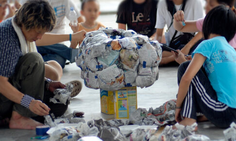 アジアローカル旅その時、子どもたちの手が止まった ワークショップが始まって数日経過。 ゴミ拾い(素材集め)やアイス・ブレイキングのゲームにばっかり夢中になったガキどもも、いよいよネタ出し→プレゼン→デザイン→図面起こしとガチモードに入っ…
