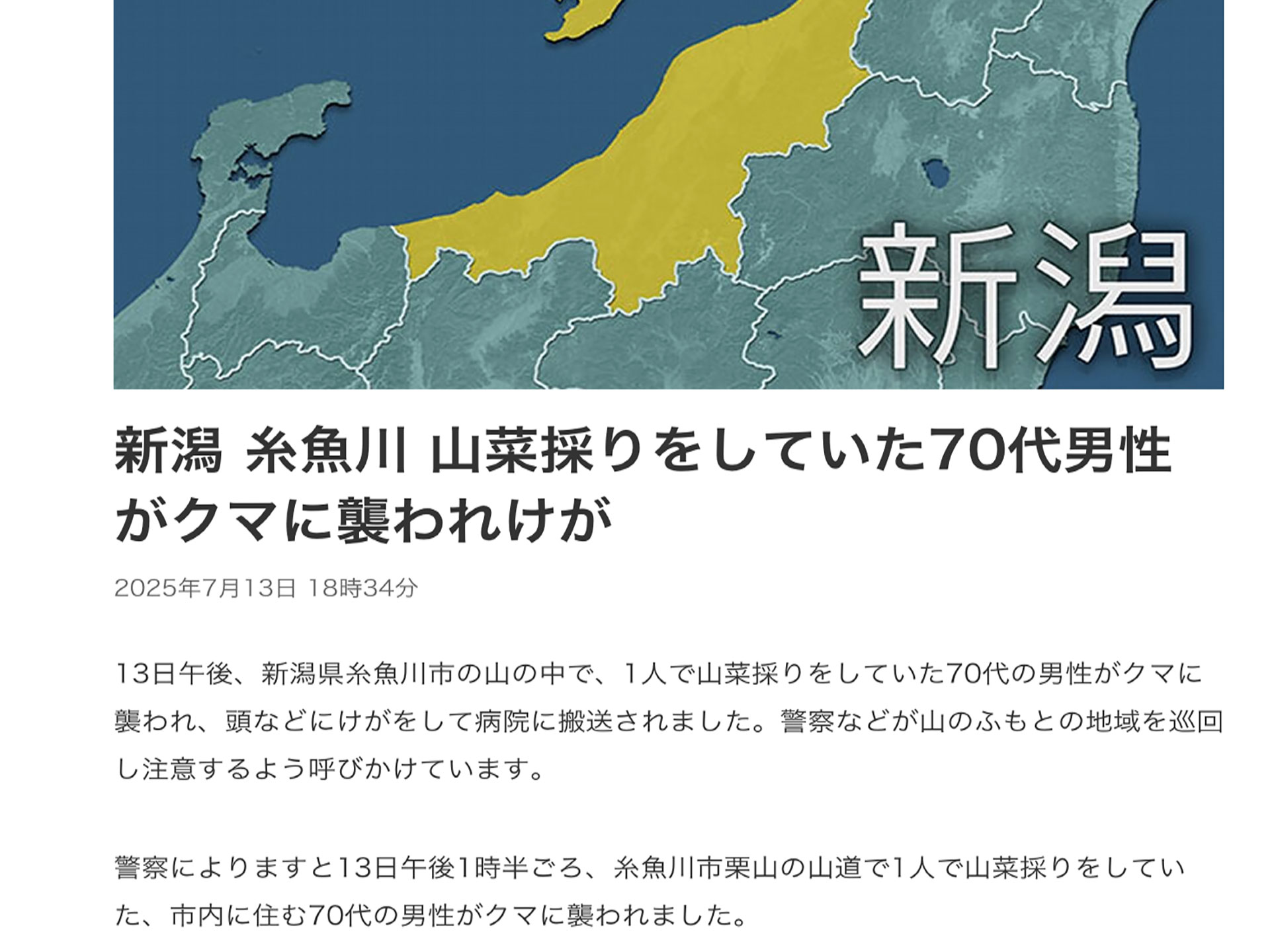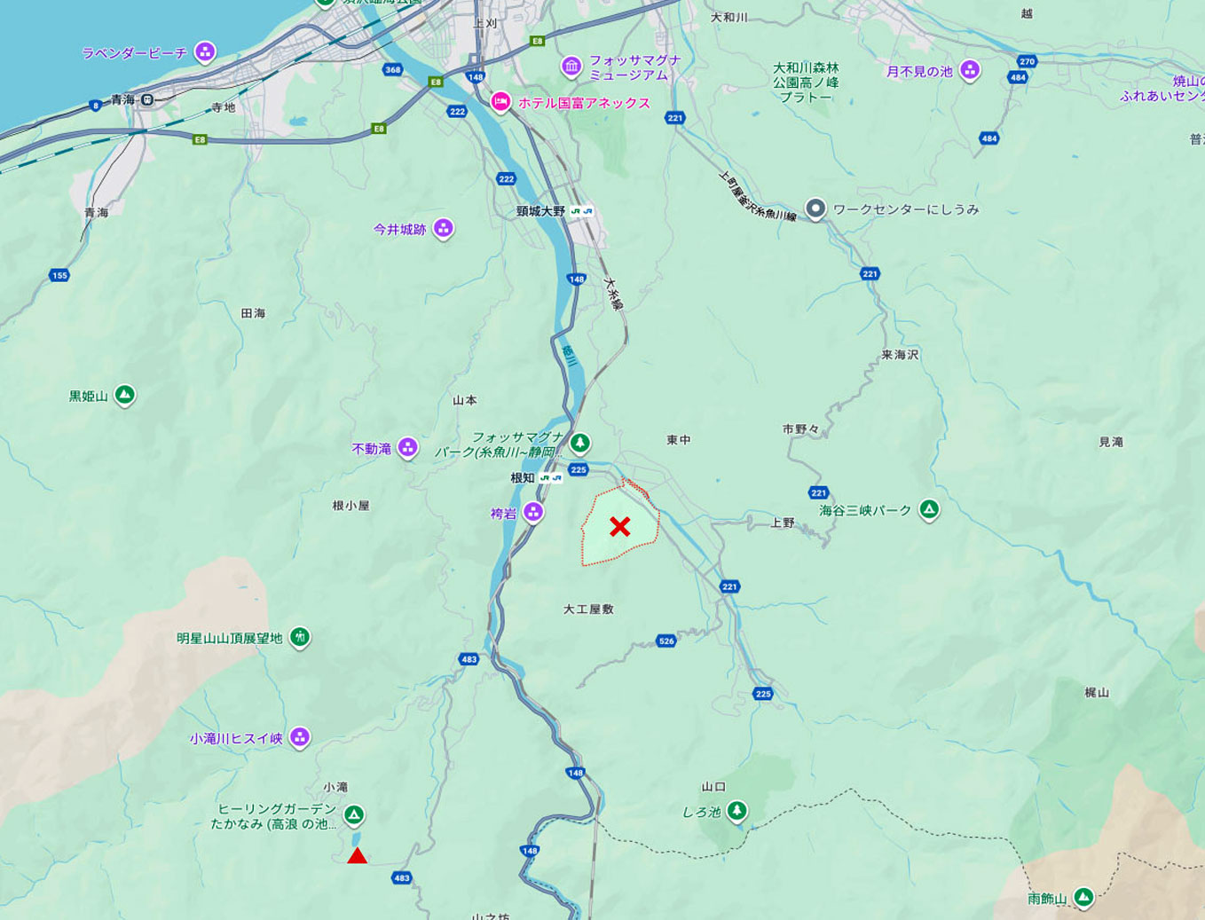 帰京して「糸魚川 クマ」でトップヒットした、N○Kニュースの記事から住所を調べてマップに落とし込んでみた。