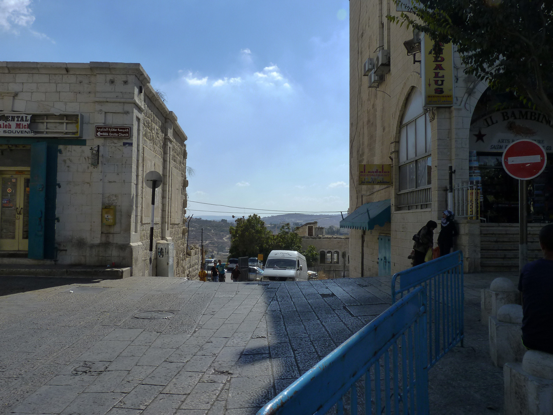 ベツレヘム。キリスト生誕教会とモスクの間にある通り。現地のムスリムの若者曰く「射殺事件現場」だというが…